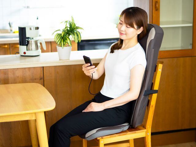 もみ玉によるマッサージの範囲は背面全体のほか、<肩まわり>や<腰まわり>だけの集中的なマッサージも可能。さらには、座面に搭載されたバイブレーション機能が太もも裏を心地よく刺激してくれます。